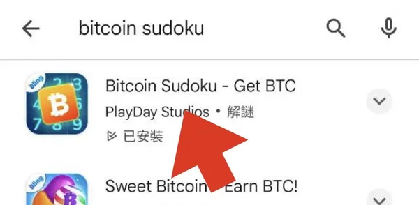 遊戲的玩法很簡單,首先前往 Google Play 或 App Store,搜尋「Bitcoin Sudoku」即可下載(下圖第一款),由於遊戲時間較長,比特幣數獨在每輪遊戲後獲得的積分也相對較高,與其他動不動就需要看廣告的同類型遊戲對比,你會看到的廣告數也相對較少(遊戲中不會被打擾)。