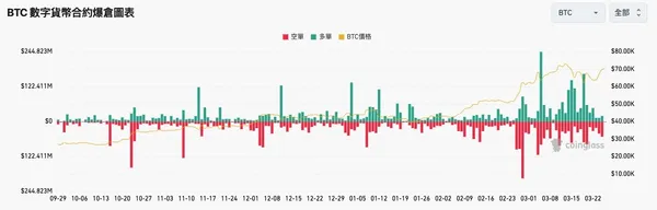 比特幣夜衝7萬!外媒:空單爆倉量低於近期平均值