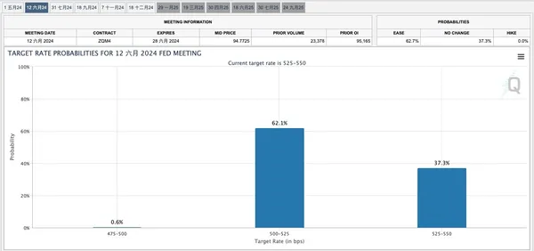 PMI 意外強勁的表現,也一度打壓市場對於聯準會降息的預期。芝商所聯準會觀測器(Fedwatch)數據顯示,消息傳出後市場預期 6 月將降息一碼的機率一度跌破 50%,但截至撰稿時已回升至 62.1%。此外,市場普遍預測 5 月不會降息。