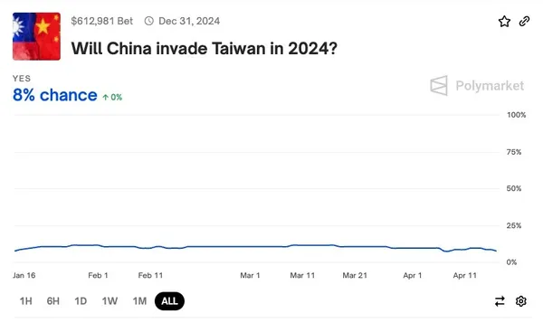 預測「中國攻台」機率也能賺?Polymarket 預測今年機率僅 8%