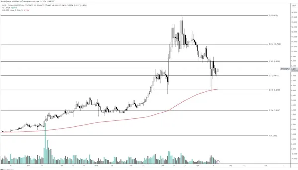 從發布的圖表來看, Altcoin Sherpa 認為 $RNDR 在出現下一次看漲反轉前,可能會一路回到 0.618 的斐波那契水平,而 6 美元附近是很好的買進點。