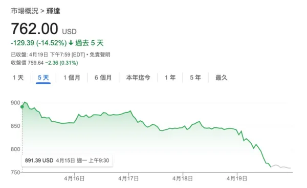 同時受牽連的有 NVIDIA(輝達),作為美超微伺服器解決方案晶片最大供應商之一,輝達在 19 日當天暴跌 10%,下跌 84.71 美元,以 762 美元作收,過去 5 天下跌超過 14%,市值縮水 1830 億美元,不過仍保持在美國市值第三大公司的地位,領先知名電商亞馬遜(AMZN)。