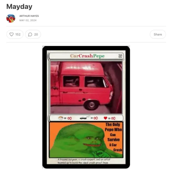 最近,知名交易所 BitMEX 創辦人、前執行長亞瑟海耶斯(Arthur Hayes),在一篇最新的文章中,分享了他的 5 月份加密貨幣投資策略,標題為《Mayday》,引起了加密貨幣市場的關注。