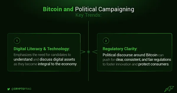 比特幣在政治競選中的整合突顯了幾個關鍵趨勢。