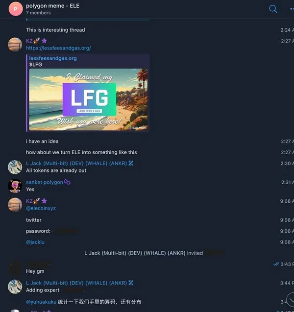 從攢局到最後內部拋售被發現,雖然我們目前無法證實這些聊天截圖的真實性,但就爆料本身來看,關於Polygon高層與外部人員共通操縱ELECOIN的事情已經脈絡清晰。