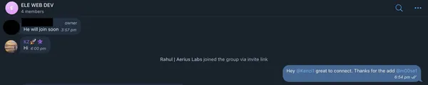 爆料人Rahul參與項目稍晚且負責的規模很小,主要是幫助ELECOIN完成網頁製作,並稱授權自己訪問ELECOIN域名的正是Polygon顧問Kenzi Wang,為此Rahul還通過其他渠道再三確認了與之溝通的TG帳號屬於Kenzi Wang本人。