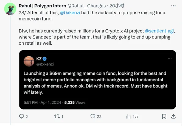 昨(21)晚 ,推特帳號標籤自稱為Polygon社群實習生的 @Rahul__Ghangas在推特上發布了一條長達34段的揭露文,認為Polygon高層夥同外部人員惡意操縱迷因項目ELECOIN盈利,並控訴其對社區開發者進行誤導和剝削。