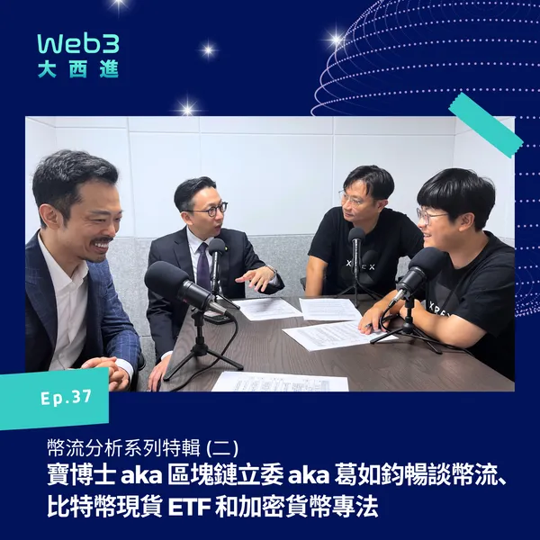 【幣流追蹤】系列特輯第二集請到了寶博士來作客,從幣流分析為起點談到比特幣現貨 ETF ,再到加密貨幣專法,討論區塊鏈產業發展。這集節目中,寶博士分享了他對台灣政府看待比特幣 ETF 的想法。寶博士希望,比特幣和加密貨幣能夠成為政府、學校和甚至檢警調都能熟悉、討論的話題,讓更多的對話輔助形成更完善的監管。