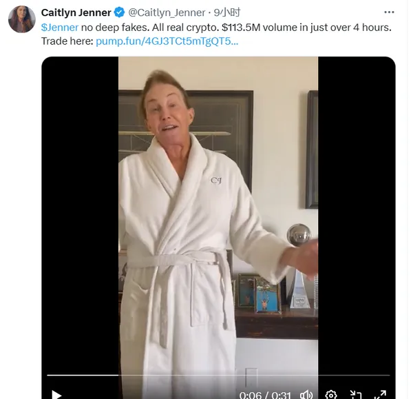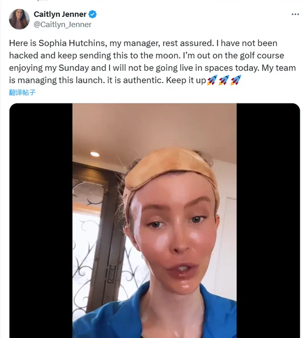緊接著凱特琳·詹納又在推特po出一條本人露臉影片表示$Jenner確實是本人團隊發布,她本人當前正在打高爾夫所以暫時無法出面。