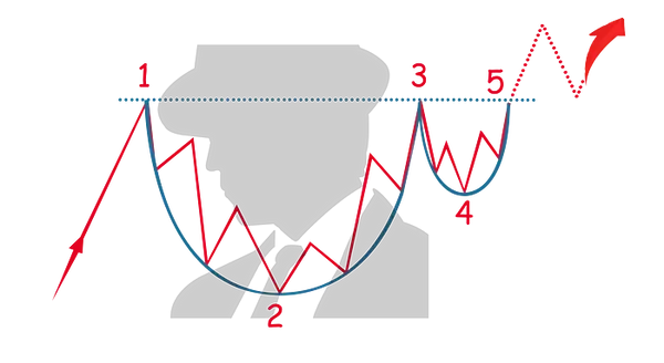 這種看漲延續模式類似茶杯形狀,有一個圓形的「杯」,後跟一個較小的「柄」。柄表示小幅整理,通常會導緻與初始上升趨勢相同方向的突破。
