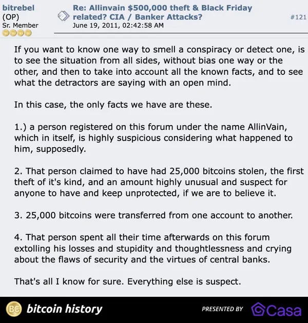 這起盜竊案涉案金額巨大,引發了陰謀論。有人說,整件事都是Allinvain一手策劃。他們指控Allinvain正在傳播FUD。