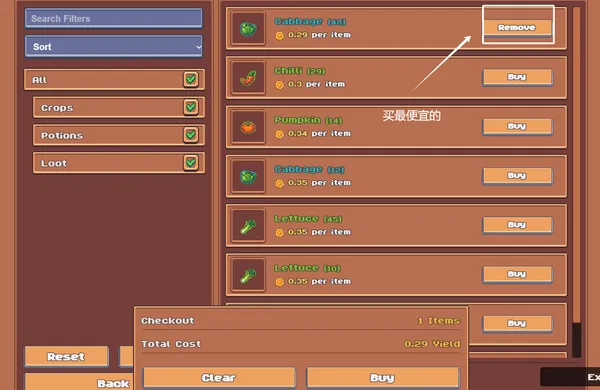 - 再從市場買一些種子作物,挑最便宜的買就行