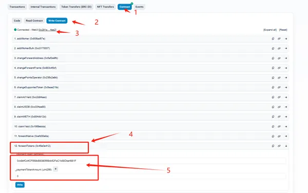 - 轉到 Blast 瀏覽器,連結錢包後打開「forwardTokens」