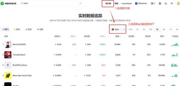 到 Element 買一個Blast 鏈的 NFT,互動金額不限,盡量選便宜的買。