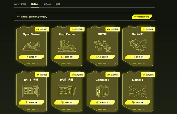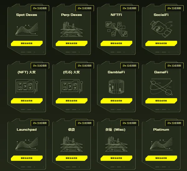每個類別會帶來2倍積分乘數提升,全部類別互動一遍就可以獲得24倍積分乘數。
