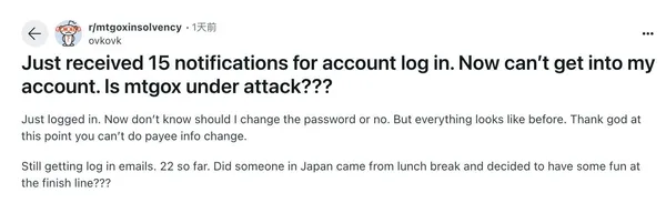 有部分用戶擔心這可能是對Mt. Gox債權人的「暴力」攻擊,但也有人認為這可能只是網站故障。在相關事件發生後,Mt. Gox網站已進入維護模式。郵件寫道:「感謝您的耐心等待。請稍後再回來查看。」
