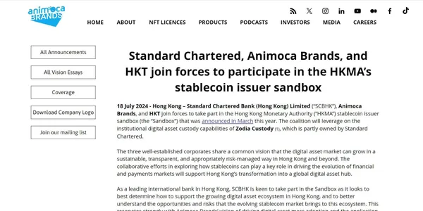 渣打銀行(香港)有限公司、Animoca Brands Limited、HKT三家強強聯手。渣打銀行(香港)有限公司正在設立比特幣和以太坊交易櫃臺,使其成為首批進入現貨加密貨幣交易的全球銀行之一。此外,渣打銀行通過其子公司Zodia Custody在香港推出了加密貨幣託管服務,主要面向機構投資者。在區塊鏈應用方面,渣打銀行(香港)已成功完成了首個跨區塊鏈平台的試點交易,該交易連接了香港的eTradeConnect和中國人民銀行的貿易金融平台(PBCTFP)。