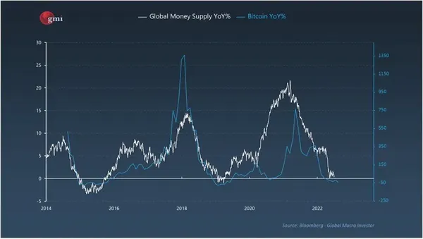 歷史上,加密貨幣與全球貨幣供應量有很強的相關性。