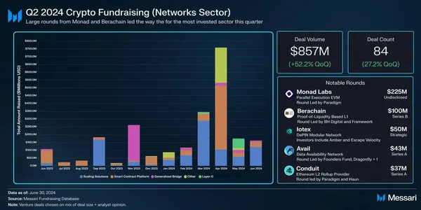 基礎設施領域籌集了超過 25.8 億美元的資本,成為風險投資中最大的類別,顯示了風投對擴展解決方案、互操作性、模組化和新區塊鏈基礎設施的濃厚興趣。