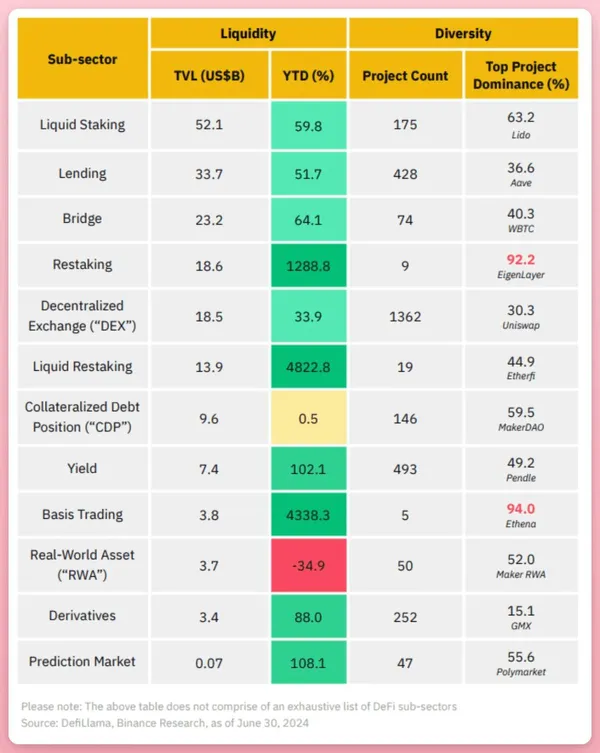 DeFi 的各個子領域也在新的收益來源、空投熱潮和 meme 幣的推動下蓬勃發展。