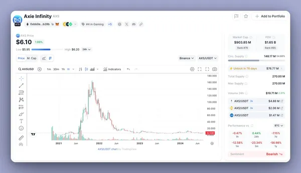 該類分析將有助於確定代幣是否值得持有,以及是否具備上漲潛力。但98%的山寨幣注定要失敗,因為它們根本沒有任何潛力。比如,如果你在2021年11月投資1萬美元AXS ,那麼今天就只剩下382.5美元。