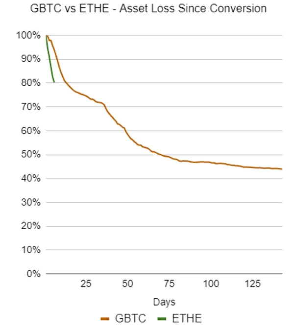 鑒於 $ETHE 的初始流出速度快於 $GBTC,我們預計流出將在接下來的兩週內開始減緩。