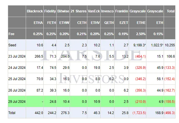 • 值得注意的是,Grayscale ETHE產品似乎出現了大量資金外流,幾乎每天都是負值,總計-1,723.5。