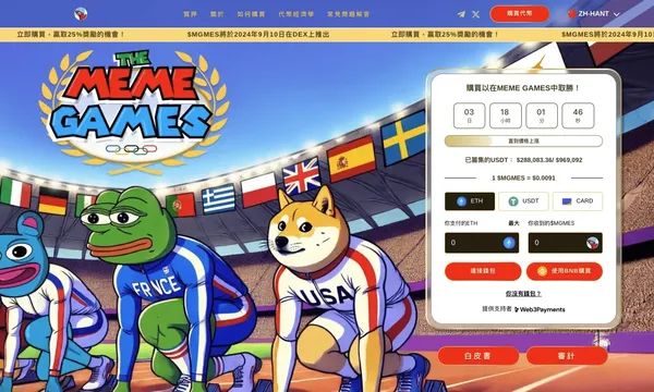 當巴黎奧運如火如荼地進行時,加密世界也出現了令人注目的項目「The Meme Games」。這是一款結合「迷因文化」和「奧運精神」的創新區塊鏈遊戲,在預售階段就已募集到25萬美元,顯示了市場的熱烈反應。