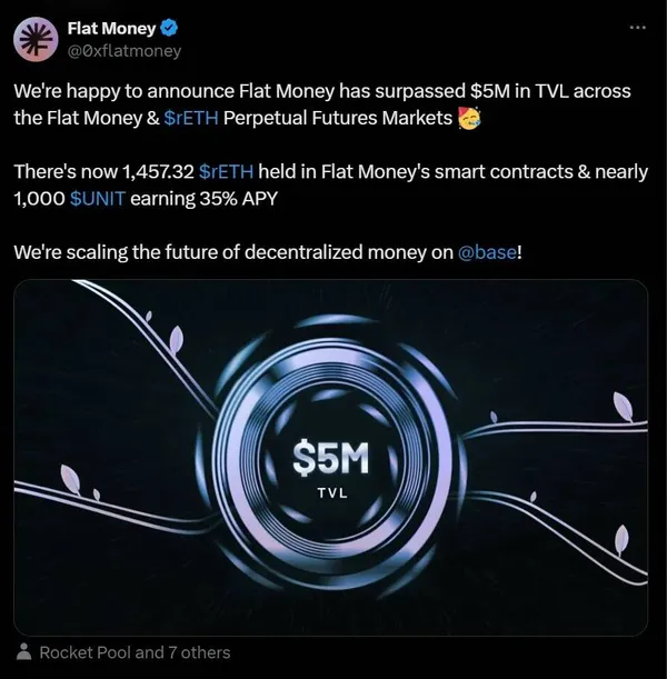 本周的最後一個撸毛機會是 Flat Money,一個由 rETH 支持的資本高效平幣。