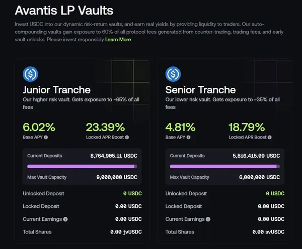 根據你的風險承受能力,用戶可以選擇在 Junior 或 Senior 級别存款,以賺取 USDC 的收益。