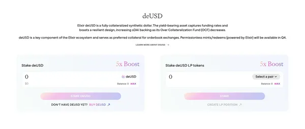 持有者可以使用 deUSD 穩定幣進行質押或提供流動性,從而賺取收益和積分。