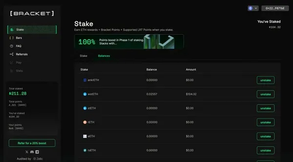 本周的第一個撸毛機會是 Bracket,一個旨在提高流動質押和流動再質押代幣收益的平台。