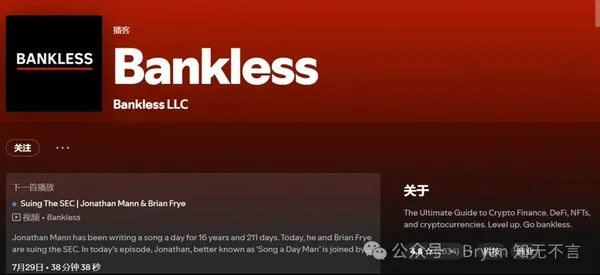 由 Mythos Capital 公司創立者 Ryan Sean Adams (RyanSAdams)和BanklessHQ聯合創始人 David Hoffman(TrustlessState)主持,該播客探索了網路貨幣和金融的廣闊領域,幫助聽眾理解和利用區塊鏈技術的革命性潛力。該節目旨在透過教育個人如何在加密空間中導航和利用機會,最終促進財務獨立和自我主權。