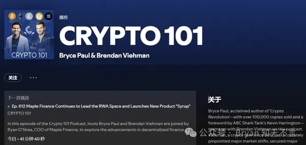 CRYPTO 101 播客(crypto101pod)是一檔專為普通消費者設計的加密貨幣指南節目,由Tower 18 Capital的聯合創始人 Bryce Paul(BrycePaul101)和加密貨幣分析師和交易員 Brendan Viehman 共同主持。