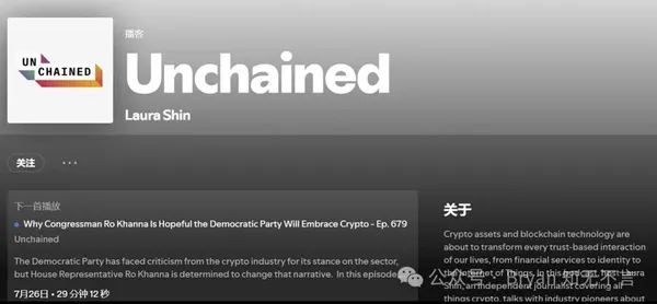 Unchained(Unchained_pod)播客是一個深入探討加密貨幣和區塊鏈技術的節目,由著名的加密貨幣記者 Laura Shin(laurashin)主持。Laura曾是《福布斯》的高級編輯,是首位全職報導加密貨幣的主流記者。