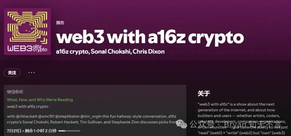 Web3 with a16z crypto 播客是由a16z crypt(a16zcrypto)團隊製作的節目,專注於探討下一代網路的發展。這個播客緻力於幫助聽眾深入理解區塊鏈、加密貨幣和Web3的世界。通過討論最新的趨勢、分享研究成果以及採訪頂尖科學家和行業專家,節目提供了豐富的內容和多樣的形式,讓聽眾全面了解這個迅速發展的領域。