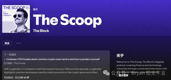 The Scoop 播客是由 The Block(TheBlock__)資深編輯 Frank Chaparro(fintechfrank)主持的一檔旗艦播客。該節目專注於金融和科技領域,通過與頂尖思想領袖、文化偶像和行業資深人士的獨家訪談,深入探討加密貨幣、區塊鏈和Web3的最新發展和重大新聞 。