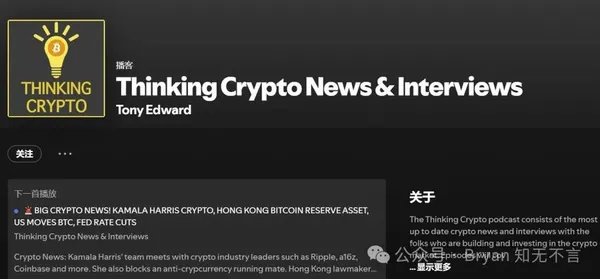 Thinking Crypto News & Interviews 是一檔由Tony Edward(ThinkingCrypto1)主持的播客節目,旨在提供最新的加密貨幣新聞和深度訪談。Tony Edward自2016年以來一直活躍於加密貨幣市場,擁有豐富的經驗和廣泛的行業知識。