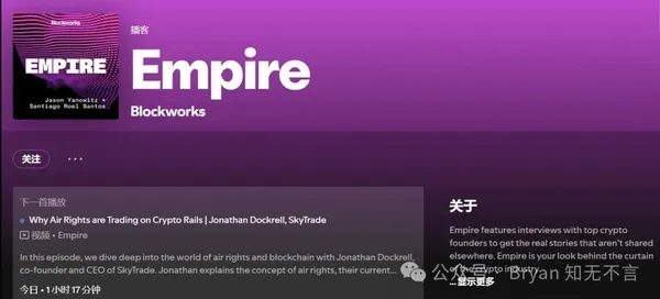 Empire 是由Blockworks(Blockworks_)推出的一檔深度探討加密貨幣行業的播客節目,主持人為Blockworks聯合創始人Jason Yanowitz(JasonYanowitz)和資深加密貨幣投資者Santiago Roel Santos(santiagoroel)。