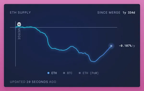 在 EIP-4884 Proto-danksharding 升級後,由於 L2 所支付的費用下降,導緻 ETH 的銷毀率降低。儘管ETH的通脹率仍低於1%,但這對看好 ETH 作為超聲貨幣(ultrasound mone)的人來說是一個挫折。