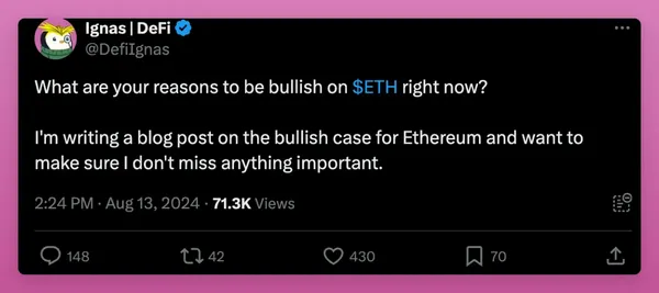 對ETH持樂觀態度的理由有很多。我在X上詢問了我的關注者,分享他們的看法。