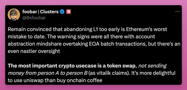 - 此外,以太坊的模組化方法與二層解決方案 (L2) 的結合導緻了流動性分散,用戶體驗變得複雜。