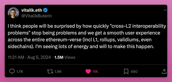 實際上,Vitalik 本人表示,人們會驚訝於「跨 L2 互操作性問題」將不再是問題。