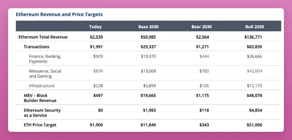 不過,我更感興趣的是 ETH 的51,000美元看漲情景。無論如何,VanEck 的 ETH 價格預測基於以下幾點: