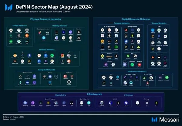 今年,加密項目的風險投資資金迎來了顯著複甦。根據 Rootdata 的數據,截至 2024 年 8 月,全球投資總額已達 67 億美元。最近幾個月,DePIN 網路的崛起正展現出類似「共享經濟」早期階段的市場契合度,這些項目覆蓋了 DePIN 的多個領域,每個領域都展示了獨特的應用場景。