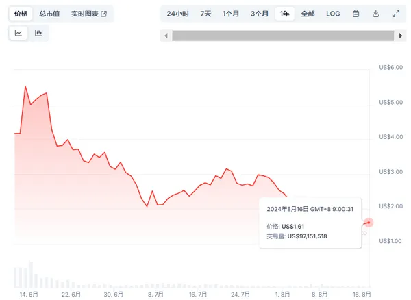 不久前韓國第二大交易所 Bithumb 上線了 IO,已經在幣安等多家主流交易所上架。IO 當前市值 1.5 億美元,FDV12.8 億美元,最大供應量 80 億,當前流通率 11.88%。