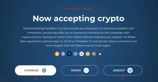 Coinbase Commerce、Gemini 和 Anedot 都在處理向川普國家委員會的鏈上捐款。以下是屬於川普國家委員會捐款的加密貨幣地址。