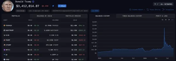 該地址高點資產達 1800 萬美元,主要得益於川普相關概念 meme 幣的暴漲。