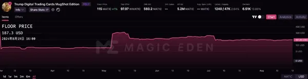 OpenSea 數據顯示,從總交易量而言,川普前兩個 NFT 系列更受歡迎,交易量分別為 15,812 ETH、22080 ETH。鑒於所有銷售均需向創作者收取 10% 的版稅,自啟動以來,第一個系列 NFT 項目的銷售額為 1900 萬美元,扣除 OpenSea 2.5% 的費用後,賺取了 142.5 萬美元。