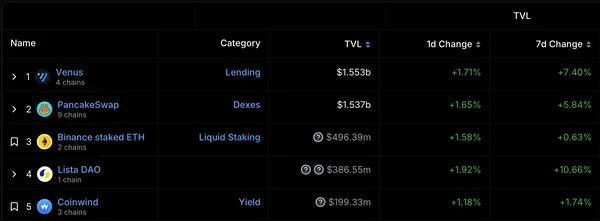 Venus 在早前經歷過一些drama劇情,被盜,團隊重整等。但是在經歷品牌更新和Binance介入後,目前發展相對穩定,且已經是 BNB Chain TVL 排名第一。